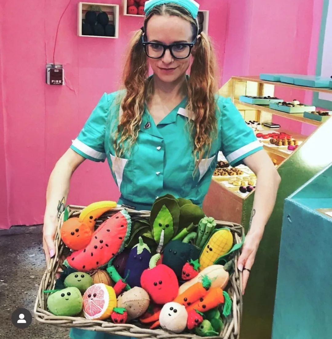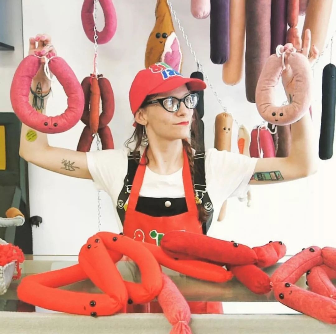 不过,来自英国的女生Lucy Sparrow直接创造了属于自己的“超市”。里面各种零食、饮料、披萨、香肠、番茄酱、辣酱……上千件商品都是她用毛毡手工做的。用毛毡把日常经历和商品复制出来,就像一个毛毡的平行世界。