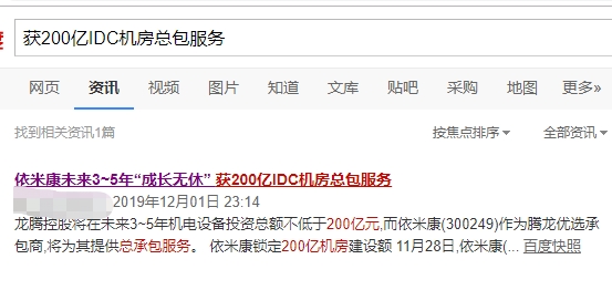 记者查询发现,《依米康未来3-5年“成长无休” 获200亿IDC机房总包服务》一文,至今仍能在多家网站看到。