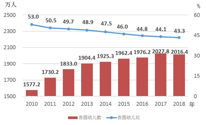 图11 2010—2018年公办幼儿园在园幼儿数及占比情况