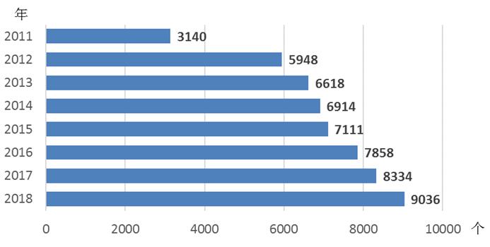 3.残疾儿童专业康复服务能力逐步提高。2018年国务院印发了《关于建立残疾儿童康复救助制度的意见》,明确了残疾儿童康复救助对象、救助内容、工作流程及职责分工等,进一步提高了儿童康复服务能力和效率。2018年,全国开展残疾儿童康复的残疾人服务机构有9036个,比上年增加702个,增长8.4%(见图5)。全国15.7万名0—6岁残疾儿童接受了基本康复服务,比上年增加1.6万人,增长11.2%。