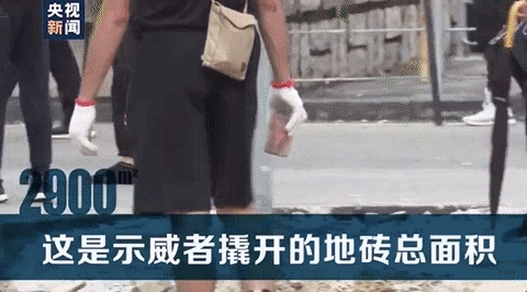这是示威者撬开的地砖总面积,相当于7个篮球场大小,这些砖头往往成为示威者攻击的武器。