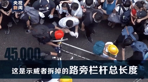 这是示威者拆掉的路旁栏杆的总长度,比一场全程马拉松,还要多出3千米。
