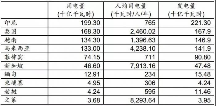 东南亚区域清洁能源储备丰富。东南亚区域的水能、风能、太阳能技术可开发量分别为2.4亿千瓦、1.7万亿千瓦时和2.6万亿千瓦时。水能资源主要集中在大湄公河区域,尤其是缅甸、老挝、柬埔寨水能资源非常丰富,本国用电需求相对有限,是典型的电力输出国。由于大部分地区处于热带,日照时间较长、强度较高,东南亚国家普遍太阳能资源较为丰富,越南、印尼、菲律宾、泰国、柬埔寨等均适宜发展太阳能发电。相较而言,区域整体风能资源条件一般,资源相对丰富的国家为越南和菲律宾等国。