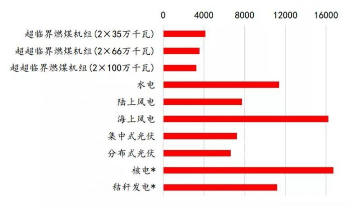 资料来源:中电联(2018),招商银行研究院(其中核电、秸秆发电为概算造价)