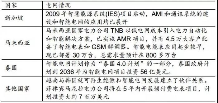 东南亚区域智能电网基础设施建设预计投资规模约百亿美元。新加坡和马来西亚是东南亚地区目前智能电网布局最快的国家,新加坡电网每年平均断电时间低于1分钟,电网已经实现双向通讯的数据采集与监控系统(SCADA)。马来西亚也已在全国范围推广了智能电表。其他国家在电网基础设施建设方面进展则相对缓慢,但随着电气化水平的提高,提高供电稳定性和电网智能化水平是必然的趋势。根据东南亚第三方研究机构Northeast Group,LLC的预测,2018-2027年,东南亚国家对智能电网基础设施投资至少将达到98亿美元。