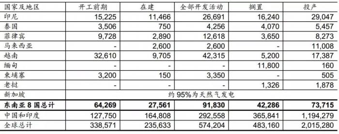 表 4:东南亚8国正在开发及已投产煤电装机(单位:MW,截至2018年)