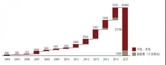 图15:2004-2015年中国企业海外电源投资规模(兆瓦)