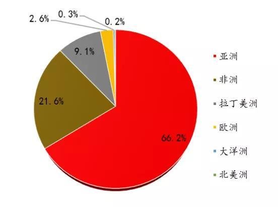 图16:2017年对外承包工程电力工程建设领域分地区新签合同额分布