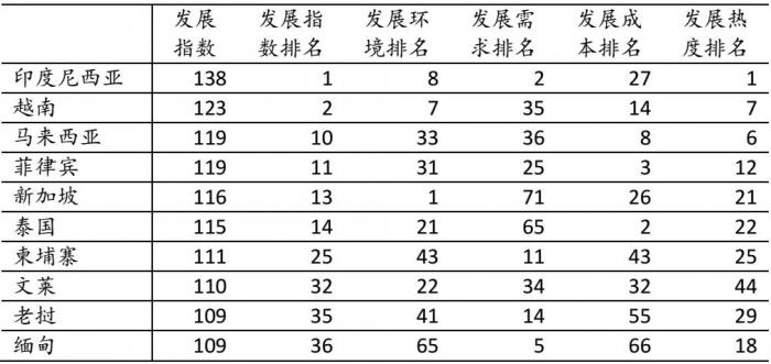 东南亚地区基建发展前景多年领跑“一带一路”沿线。中国对外承包工程商会联合中国出口信用保险对“一带一路”国家基础设施建设、投资开发潜力展开了多年研究,并且综合考量发展环境、发展需求、发展成本和发展热度四个维度,得出可横向进行国别比较的综合性指数。得益于庞大的人口基数、快速发展的经济实力和相对有利的基建环境,东南亚地区基础设施建设需求持续旺盛,能源、交通等领域的投资建设市场空间巨大,已经连续三年在该指数中排名第一。印度尼西亚、越南、马来西亚为东南亚区域基建发展指数排名前三的国家。