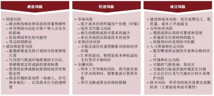 海外电力项目的购电风险较国内项目更为复杂。我国经过电力体制的改革,已经完成了厂网分离(即发电与输配电环节分别由不同企业经营),国内的发电厂发电后销售给电网公司,全国电网主要由两网负责,两网公司通过输配电网向用户提供电能,收取电费,发电、输配电及终端用电价格接受政府指导和监管。因此对于国内的普通发电厂而言,由于下游为电网公司,基本不存在电费无法收回的风险(目前的主要风险为发电设备利用率可能偏低)。而电网公司通过多年的技术和体系迭代,基本实现了预收电费,用户电费拖欠的风险也已可控。但由于电力体系的差别,海外项目面临的购电风险则更为复杂。对于发电项目,下游不论是当地电网还是大用户,信用水平难以与两网企业相比;部分项目电费波动更大,企业对电费的议价能力也可能偏弱。对于电网运营项目,由于基础设施的不完善和经济发展水平的差异,电费欠缴,偷电等行为仍然存在。但是对于设备、工程设计服务的供应商,如果是跟随大型企业出海,则不需要直面海外运营的风险,可能受项目进度影响,与开发商共同承担部分项目风险。