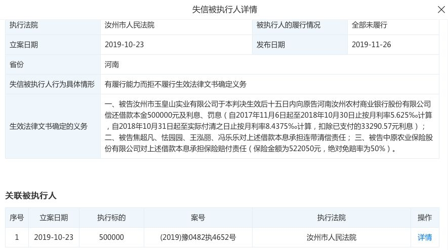 公开信息显示,中原农险近日被汝州市人民法院列为失信被执行人,原因是“有能力履行而拒不履行生效法律文书确定义务”。