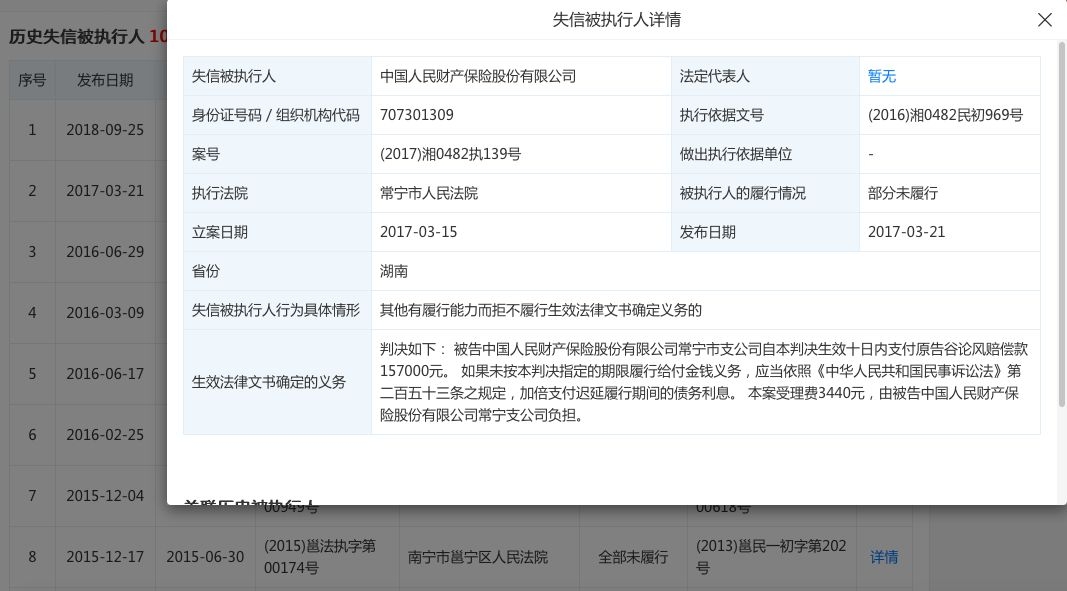 其实,中原农险并非孤例,不少保险公司上过失信名单。券商中国记者查询了几家头部险企,公开信息均可见历史失信被执行人记录。