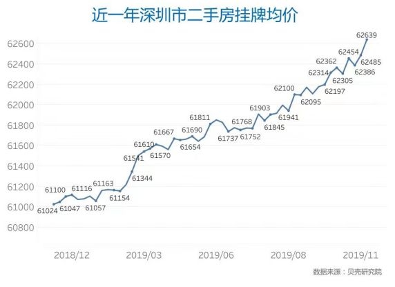 深圳的业主却信心十足。贝壳数据显示,深圳成为二手房挂牌均价唯一上涨的四大一线城市,从61024元上涨至最新的62639元,涨幅近3%。而社科院财经战略研究院近期发布的11月《中国住房市场发展月度分析报告》预测,深圳被列为房价可能一般性上涨的预警城市。在房价高位的情况下,深圳楼市何去何从,且拭目以待。