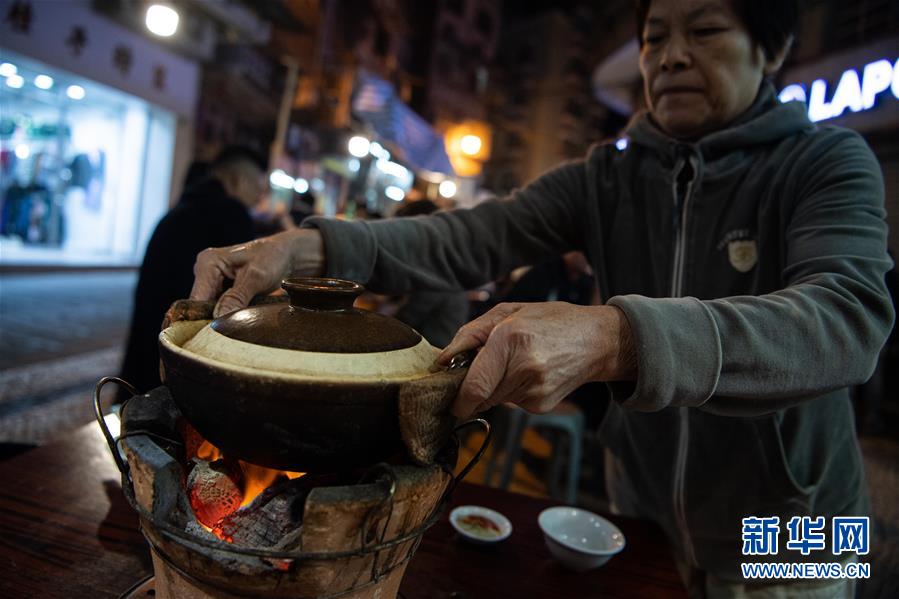 12月3日,在位于澳门新马路关前街街口的“强记羊腩煲”,员工在忙碌。传统的炭火炉与瓦煲边食边煮,羊肉色泽油润且软嫩无膻味,加入支竹、粉肠、萝卜、鱼头及生菜,口感更丰富。这款冬日里的限定美食不容错过。 新华社记者 张金加 摄