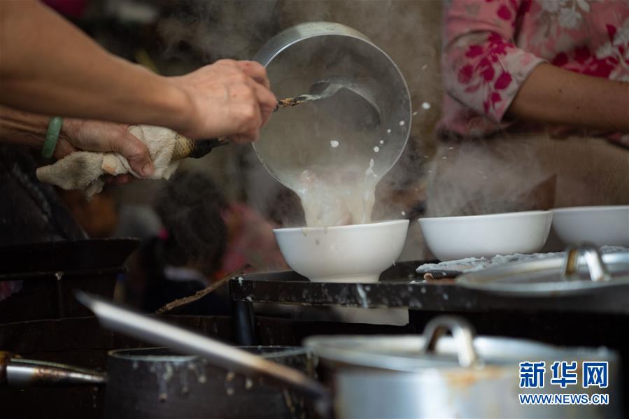 11月19日,在位于澳门草堆街女娲庙前的“雄记生滚粥”,员工在煮粥。这里是当地居民喜欢光顾的一家早餐店,粤式及第粥、艇仔粥、牛肉猪润粥、瘦肉皮蛋粥等即点即煮,亦可另加猪红,鲜味十足。 新华社记者 张金加 摄