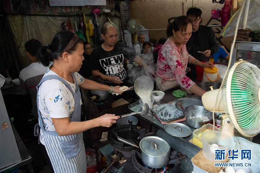 11月19日,在位于澳门草堆街女娲庙前的“雄记生滚粥”,员工在店里忙碌。这里是当地居民喜欢光顾的一家早餐店,粤式及第粥、艇仔粥、牛肉猪润粥、瘦肉皮蛋粥等即点即煮,亦可另加猪红,鲜味十足。 新华社记者 张金加 摄