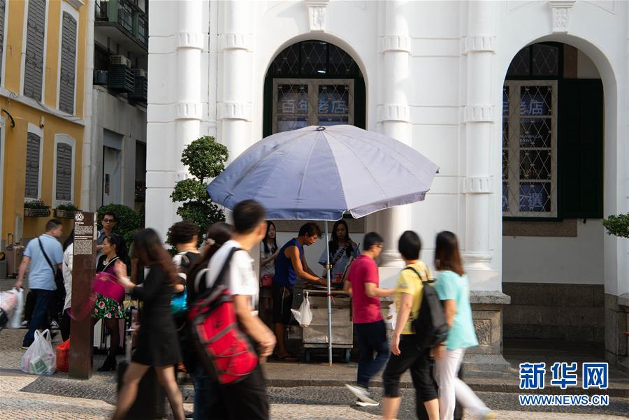 11月18日,在位于澳门新马路的古早小食“潘荣记”,游客围观购买金钱饼。“潘荣记”金钱饼在澳门已有70多年历史,这家车仔档几乎每天都排长龙,老板售完即止。金钱饼的制作材料非常简单,只有鸡蛋、面粉、牛油和糖,刚烤好的金钱饼金灿灿的,入口即化、回味无穷。 新华社记者 张金加 摄