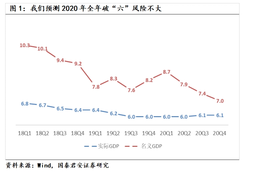 实际GDP增速不排除单季破六,但全年破“六”风险不大。