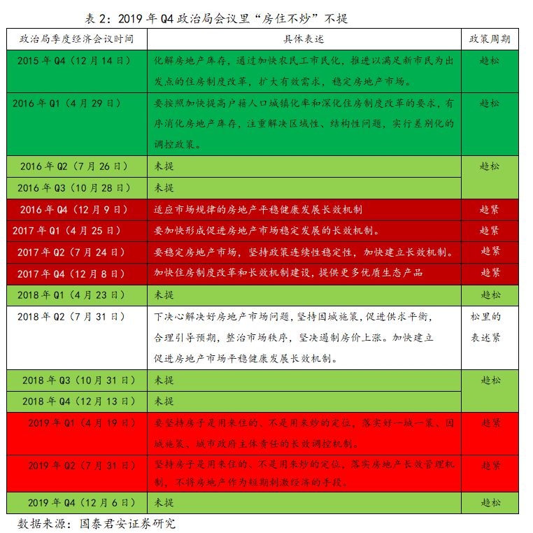 2018年Q3和Q4政治局会议,未提“房地产”:2019年上半年对房地产融资窗口指导出现放松,土地市场及新开工在2019年不断超预期。