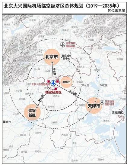 河北现已将廊坊市广阳区、永清县部分区域规划为空港新区,发展金融服务、总部基地、商贸物流、高端商务等现代服务业和电子信息等高端制造业,承接北京非首都功能转移。
