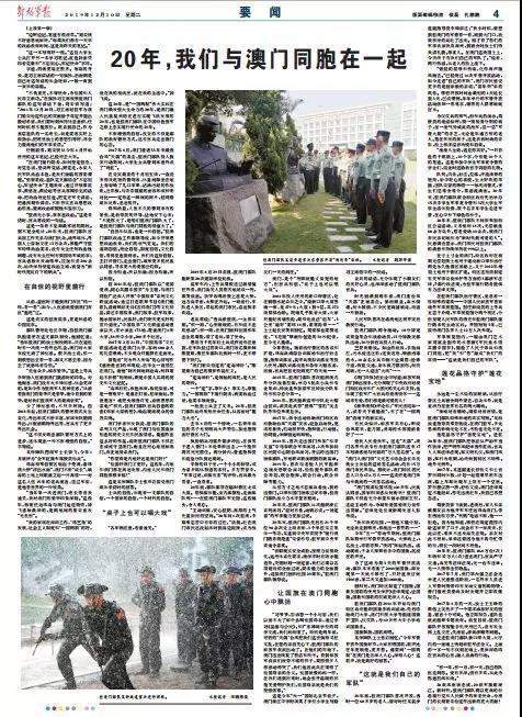 这20年,是“一国两制”伟大实践在澳门焕发强大生命力的20年,是澳门融入民族复兴历史进程实现飞跃发展的20年,也是驻澳门部队在中国特色强军之路上忠实履行使命的20年。