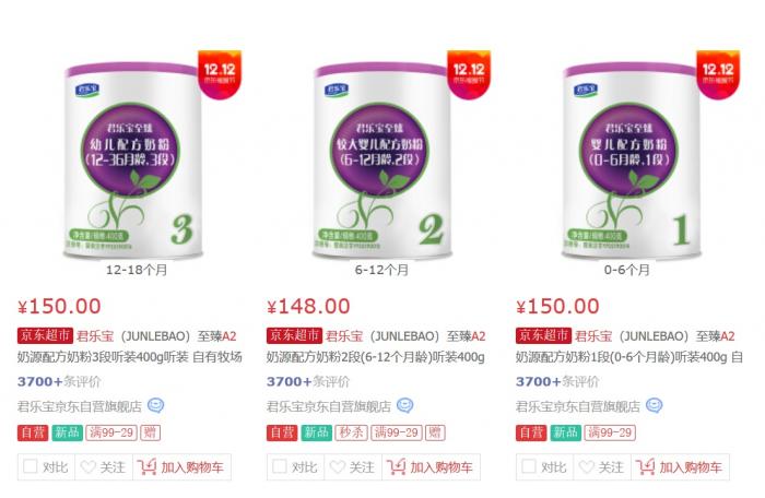 11日,21世纪经济报道记者在京东搜索发现,目前一听400g的君乐宝至臻A2奶粉售价在150元左右,与达能旗下的进口牛栏A2价格相当,比a2品牌、雀巢A2要贵一些,但比美赞臣进口A2便宜100多元,在定价上属于行业的中游水平。