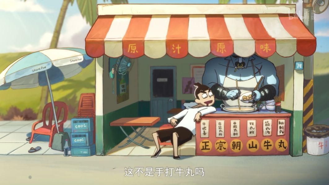 何小疯从小在粤地土壤的滋润中长大,动画里岭南风格的建筑、戏谑的广普对话、广州人的饮食习惯、简单又浪漫的配乐,照见了南方小镇人家悠闲乐呵的小日子。