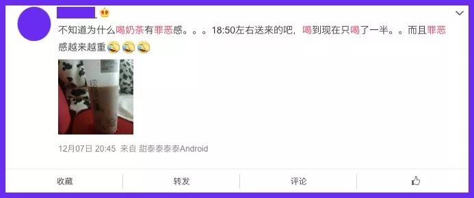 #微博女孩喝奶茶后感觉“罪恶”截图