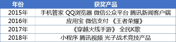 历年被收录到腾讯“名品堂”产品,主要是关于微信的产品和游戏类产品,没有新社交产品