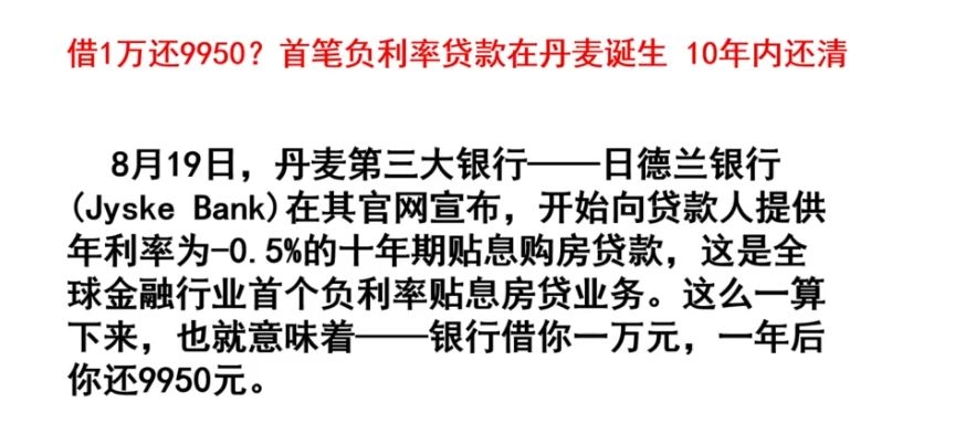 相关阅读——借1万还9950元!全球负利率真的来了,更让人细思恐极的是……