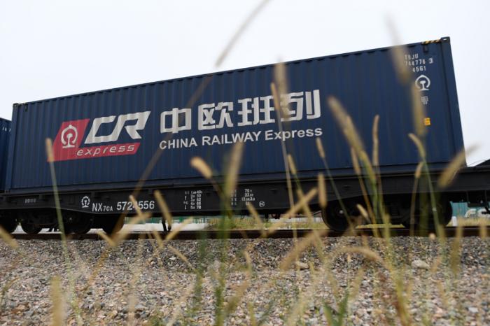 10月9日,中欧班列(义乌-列日)eWTP菜鸟号从浙江义乌火车西站开出。新华社记者 黄宗治 摄