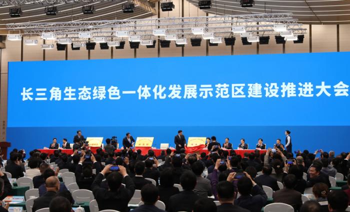 11月1日,长三角生态绿色一体化发展示范区建设推进大会在上海青浦举行。新华社记者 方喆 摄
