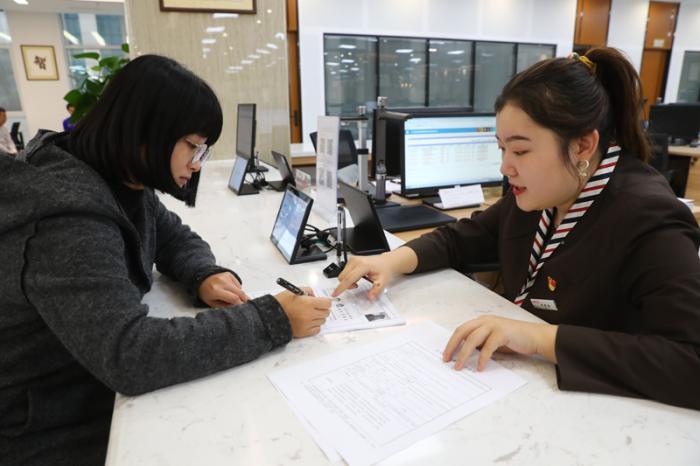 11月23日,在辽宁沈抚新区政务服务中心,工作人员(右)协助办事人办理业务。新华社记者 龚兵 摄