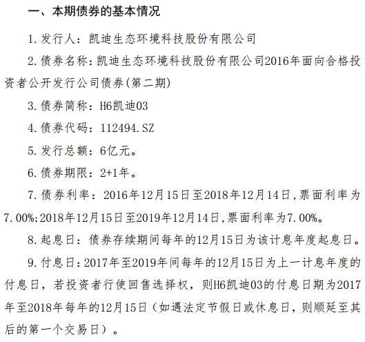 *ST凯迪公告,公司于2016年12月15日发行的“H6凯迪03”将于2019年12月16日到期,因本公司目前资金周转困难,不能按期兑付H6凯迪03的本金及债券利息,公司会积极筹措资金,争取尽早完成本金及债券利息的支付。