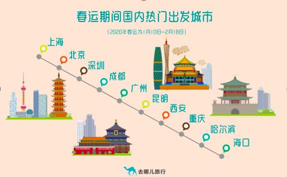 据去哪儿旅行APP火车票预约情况来看,广州南-重庆西、北京-哈尔滨西和广州-海口成为2020年春运期间旅客热度最高的三条线路。