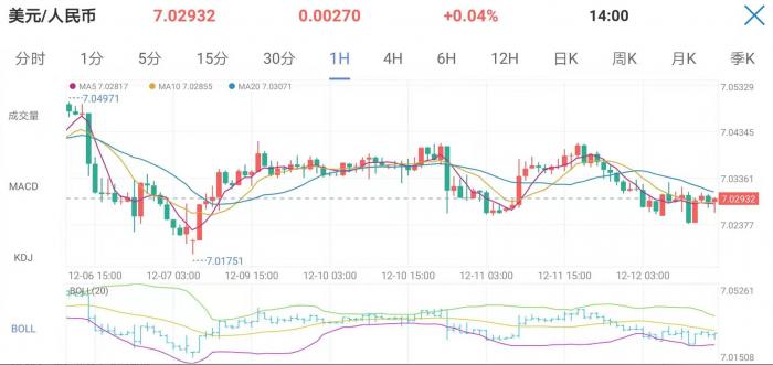12月12日,中国外汇交易中心的数据显示,12日人民币对美元汇率中间价报7.0253,较前一交易日上调132个基点。在岸人民币兑美元汇率在今早开盘也拉升逾60点,一度收复7.03关口;离岸人民币对美元较日内低点上涨近50点,收复7.03关口。