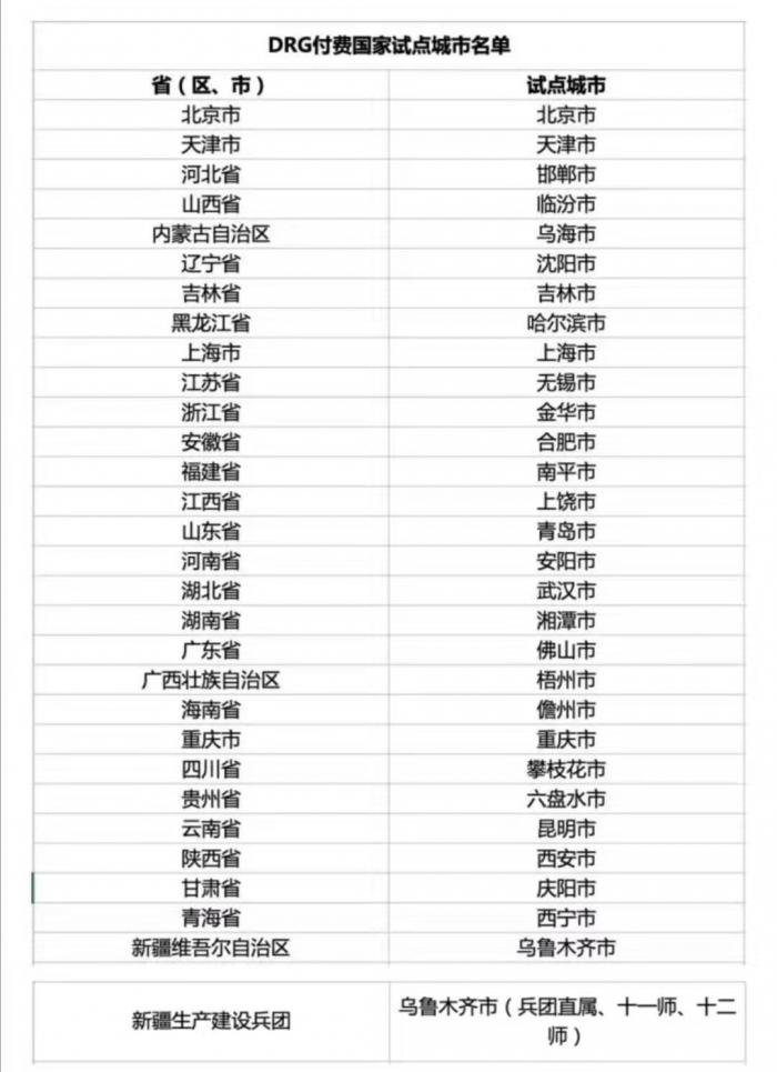从2020年1月1日开始,30个城市的医保支付将试行DRG付费模式。