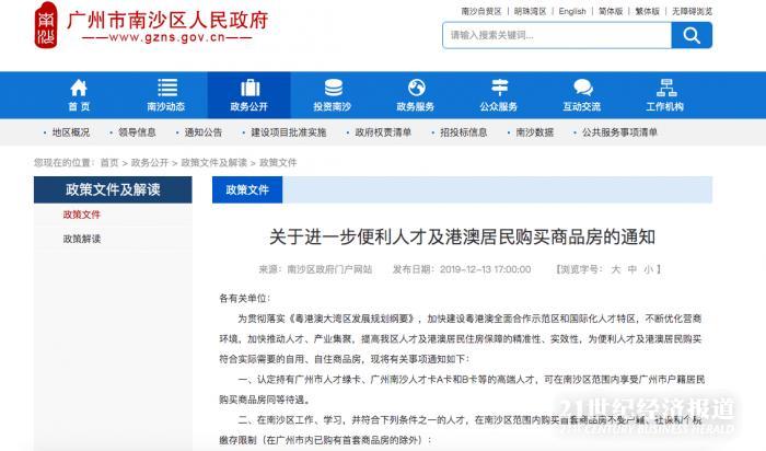 12月13日,南沙区政府官网挂出《关于进一步便利人才及港澳居民购买商品房的通知》,其中本科以上购买首套住房不受户籍、社保、个税限制。