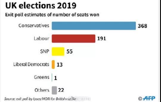 保守党领袖鲍里斯·约翰逊将不仅可能获得组阁权、而且因为掌握议会多数,有望使他同欧盟达成的脱欧协议在议会顺利通过。