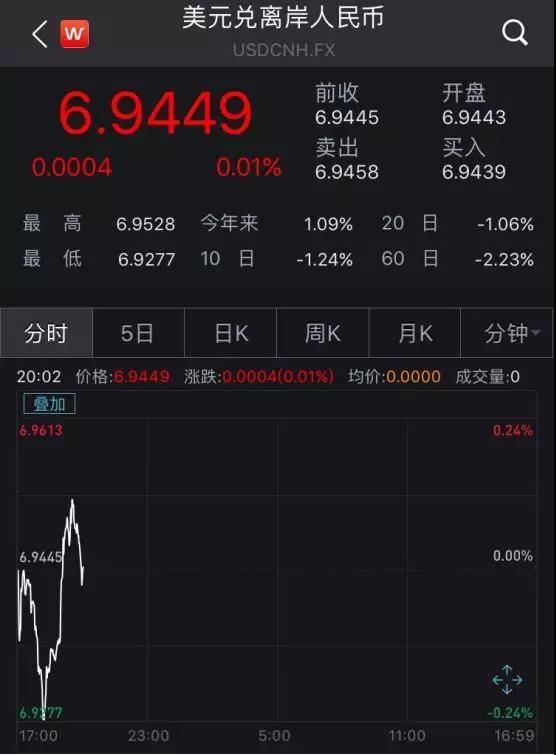 受此有关贸易的利好言论影响,全球风险情绪骤然升温,金融市场波动剧烈。美元指数短线拉升近30点,刷新日高至97.36。美股三大股指短线飙升1%,自11月底以来首次刷新历史新高。受外盘消息影响,离岸人民币兑美元日内大涨逾800点,突破7关口,跟A股相关的A50直接涨了1%。