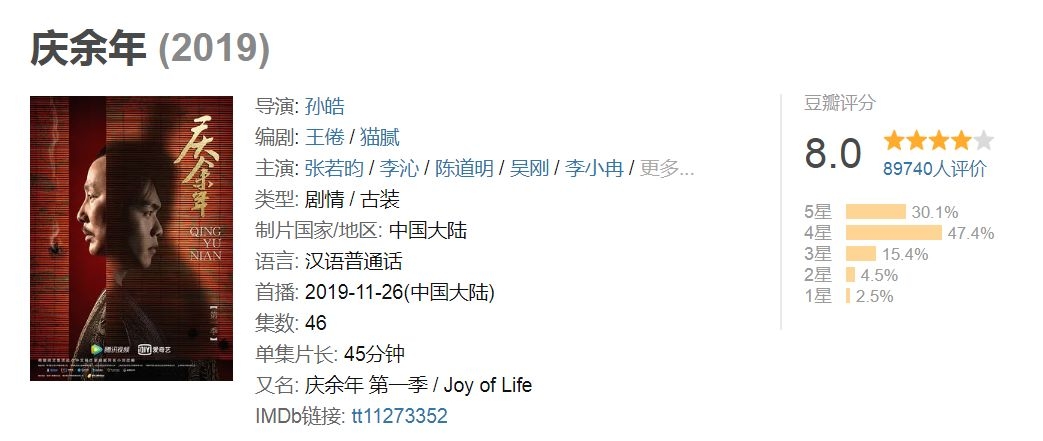 再加上跌宕起伏的传奇故事,让其在播放尚未过半的情况下,就在豆瓣获得了8.0高分。