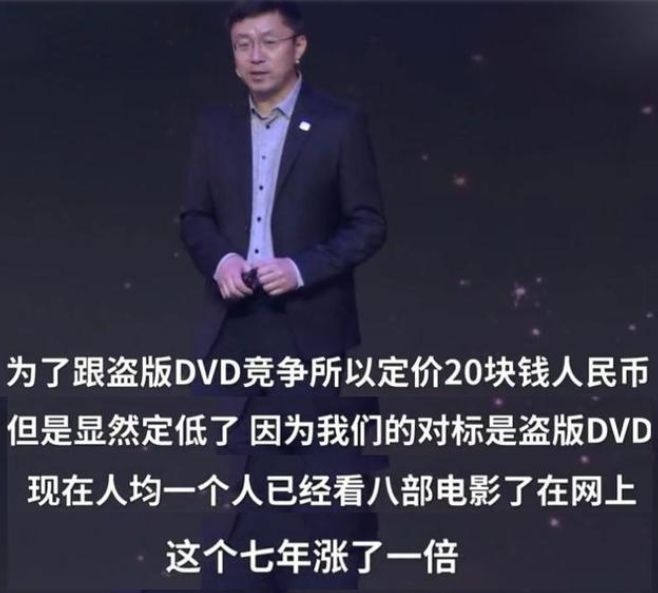 爱奇艺CEO龚宇就曾抱怨称, “2011年,为了跟盗版DVD竞争所以才定价20块会员费,但是显然定低了,因为我们的对标是盗版DVD,现在人均一个人在网上已经看到八部电影,七年涨了一倍,盗版DVD都涨了,我们这价钱还没涨。”
