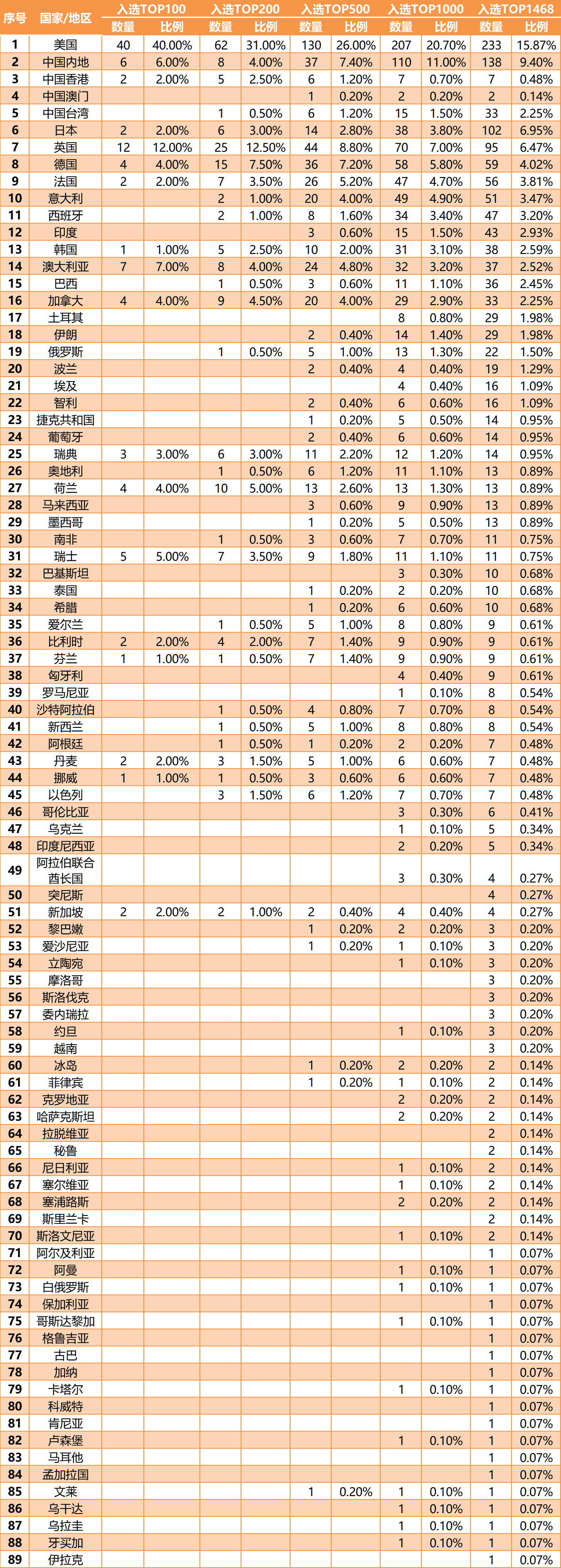 2020世界大学第三方指数排行榜,哪个国家竞争力更强?