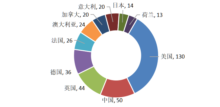 美国、英国、中国、德国、法国、澳大利亚、加拿大、意大利、日本和荷兰等43个国家拥有2020年世界大学第三方指数得分TOP500的大学,其中入选世界大学第三方指数TOP500的大学数量最多的是美国,共计130所,其次是中国50所(中国内地37所,中国香港6所,中国台湾6所,中国澳门1所)、英国44所和德国36所。