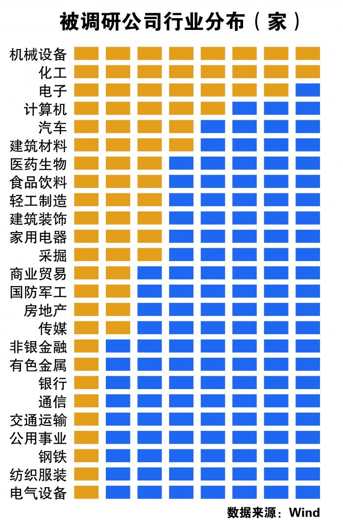 从行业调研家数看,机械设备、化工、电子三行业调研家数最多,分别有8家、8家和7家上市公司被调研,另外汽车、计算机、建筑材料等行业有多家上市公司被调研。