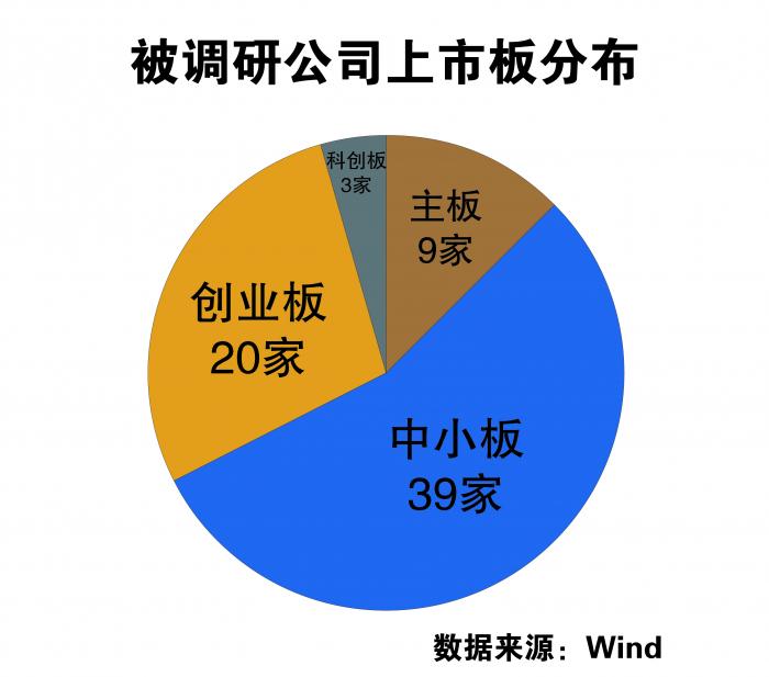 从板块上看,近一周机构调研频次最多的是中小板上市公司,占比为54.93%,其次是创业板上市公司,占比28.17%。
