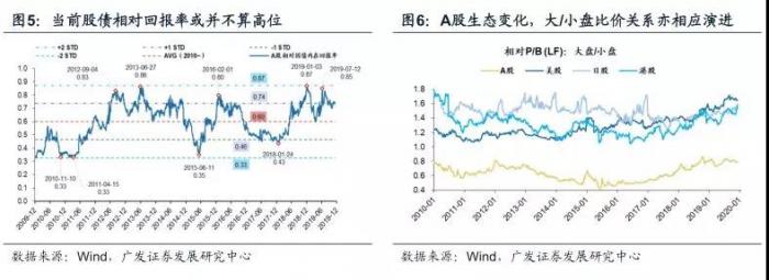 首先要厘清资产在周期中的位置,均值回归但并非刻舟求剑。均值回归的前提是周期性波动而非趋势变化。主流观点认为当前国债利率位于历史均值偏低,我们认为“房住不炒”后中长期利率水平将缓慢下行,贴现率下行驱动金融供给侧慢牛大致成立;主流观点认为当前A股估值水平位于历史均值偏低,我们认为A股估值弹性自2010年中国经济进入新常态以来明显收敛,2019年初的大Beta已经过去,之后将逐步进入钟摆摆动区间;如何看股票VS债券、大盘VS小盘在周期中的位置?如果考虑到股票和债券估值中枢的相对变化,那么股票的相对优势未必那么明显,考虑到A股生态变化(见广发策略《A股进化论系列》)——供给端注册制、需求端长线投资者占比上升。小盘股的相对位置未必那么便宜,我们2017年提出的“以龙为首”应该是战略性而非战术性的。