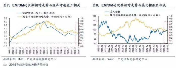 19年多类资产均录得正收益&低波动。2018年利率债均值回归、2019年股票均值回归,比较简单的均值回归题做完之后,进入相对复杂的一年。19年大类资产的主导逻辑是全球经济增长低于预期,而流动性超预期。相应的,新兴经济体相较于发达经济体的经济增速差在19年保持平稳,但全球“降息潮”和“负利率”之下,美元表现相对强势,则使得新兴股票市场的表现跑输发达市场。