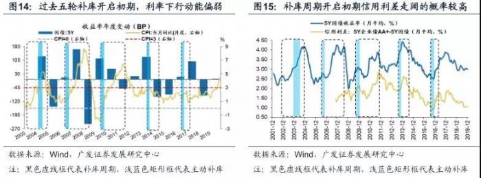 预计20H1广谱利率难以明显下行,20H2下行空间有望打开。预计20H1广谱利率难以明显下行。20H1库存周期有望进入主动补库回升期,叠加PPI回升,经验表明补库前期和PPI上行期广谱利率大概率上行而非下行。预计20H2广谱利率下行空间有望打开。考虑到20H2猪通胀压力逐渐消除、库存周期可能进入被动补库期、稳增长压力增加,20H2国内货币政策空间再度打开,基本面和政策面有望共同驱动广谱利率再度下行。