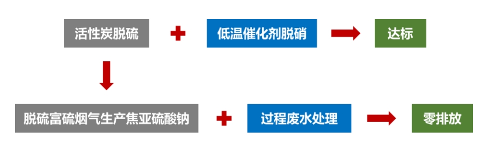 该方案充分利用了活性炭脱硫效率高并且具有多种污染物协同治理的优势,以及SCR脱硝效率高的优势,在保证系统可以稳定实现超低排放的同时,在一定程度上实现了资源化利用。此外,这一套系统还实现了零固废/废水排放。